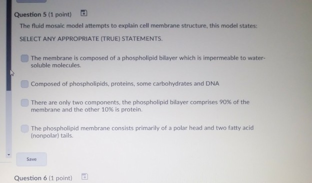 Solved Question 5 1 Point The Fluid Mosaic Model Attempts Chegg Com